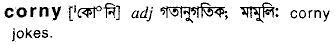 Corny : শস্যপূর্ণ; মামুলি; গতানুগতিক; শস্যাকার; শস্যজাত; শস্যোত্পাদী; বস্তাপচা; সেকেলে; শস্যপ্রাচুর্যময়;