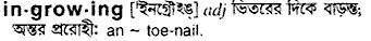 Ingrowing : অন্তর্বর্ধিঞ্চু; ভেতরের দিকে বাড়ন্ত; ভিতরের দিকে বর্ধমান; ভিতরের দিকে জায়মান;